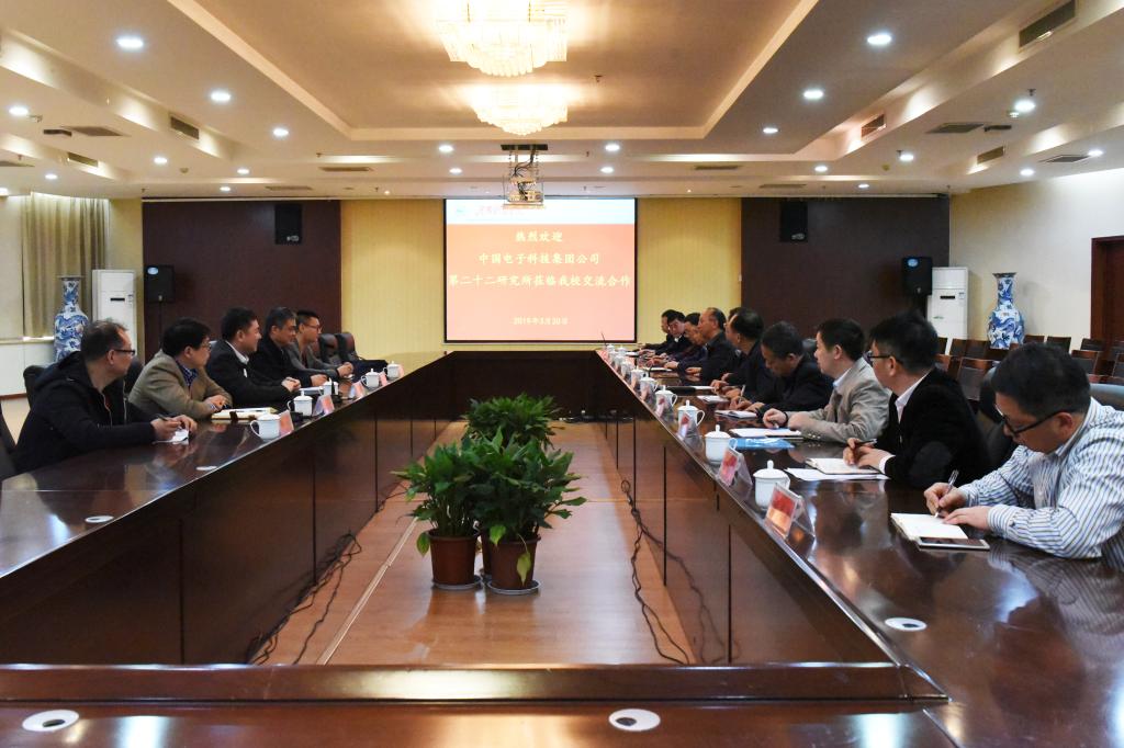 李智玉介绍了中国电子科技集团公司第22研究所的历史沿革和科研特色,提出了进一步开展合作的模式。双方围绕人才培养、科学研究、共建实验室等方面进行了细致、具体的探讨和交流。