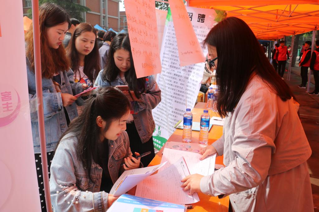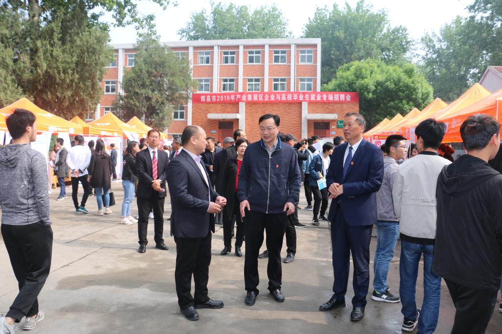 4月28日,由高职学院、辉县市人社局联合举办的辉县市2019年产业集聚区企业与高校毕业生就业专场招聘会在学院西区文化广场举行。