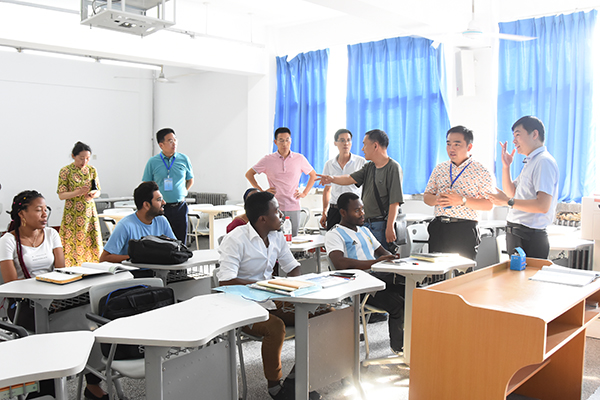 专家组分组进行调研和考察,分别到教室进行随堂听课,进入留学生公寓和餐厅实地考察,与教师、学生和管理人员进行座谈,查阅相关档案材料。