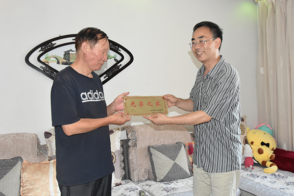 7月2日上午,校党委副书记杨松璋在党委武装部负责人的陪同下,为我校烈属、退休教师(原生命科技学院教授、享受国务院津贴、国家突出贡献专家、河南省优秀专家)杨怀森教授,参加过对越自卫反击战的退役军人、退休干部(原艺术学院党委书记)张有思,参加过对越自卫反击战的退役军人、退休干部(原后勤服务集团餐饮中心经理)孙世金颁发了“光荣之家”牌。