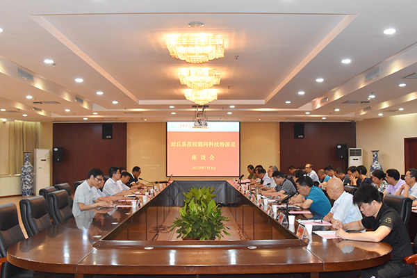 7月4日,封丘县副县长张景华一行5人,来我校慰问服务于封丘的省、市级科技特派员。我校在行政楼206会议室举行了座谈会。校党委副书记宋亚伟出席会议,组织部、科技处等部门负责人及科技特派员代表参加会议,座谈会由组织部部长姚刚主持。