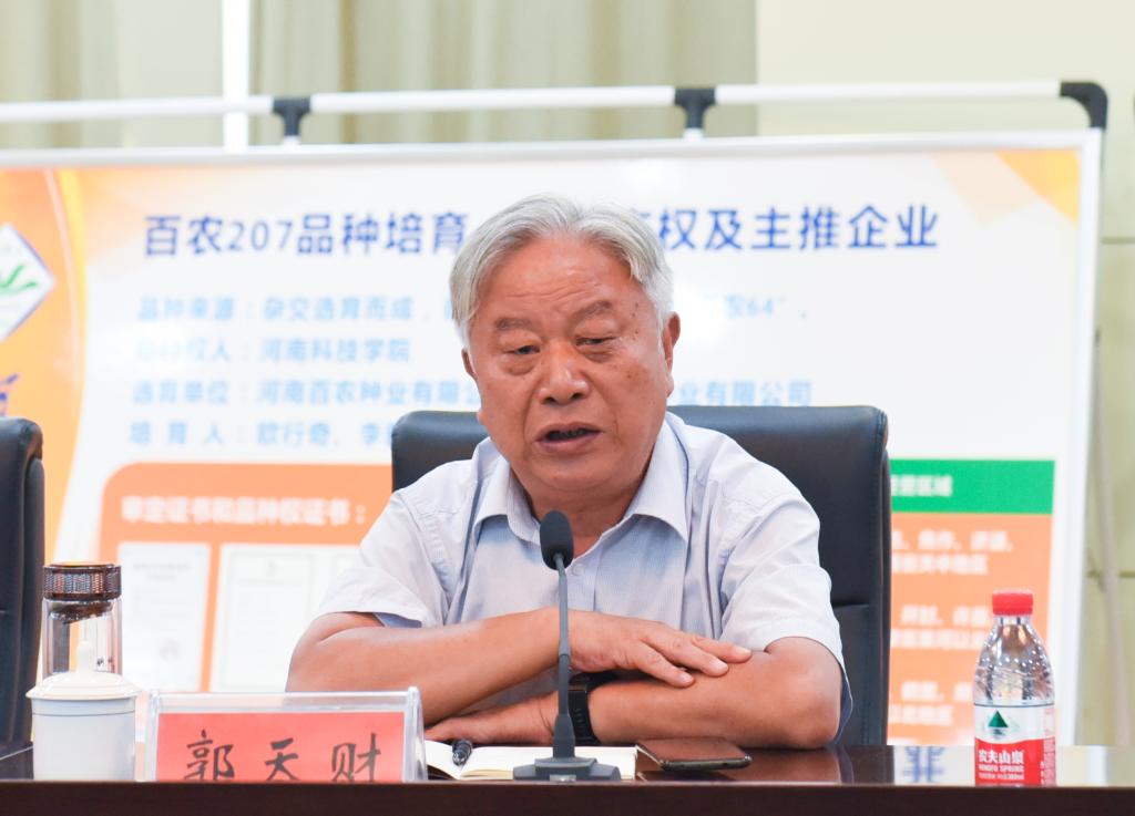 郭天财在发言中从扛起粮食安全重任、坚持绿色发展的理念、供给侧结构性改革三个角度客观介绍了小麦新品种百农207的优质特性。