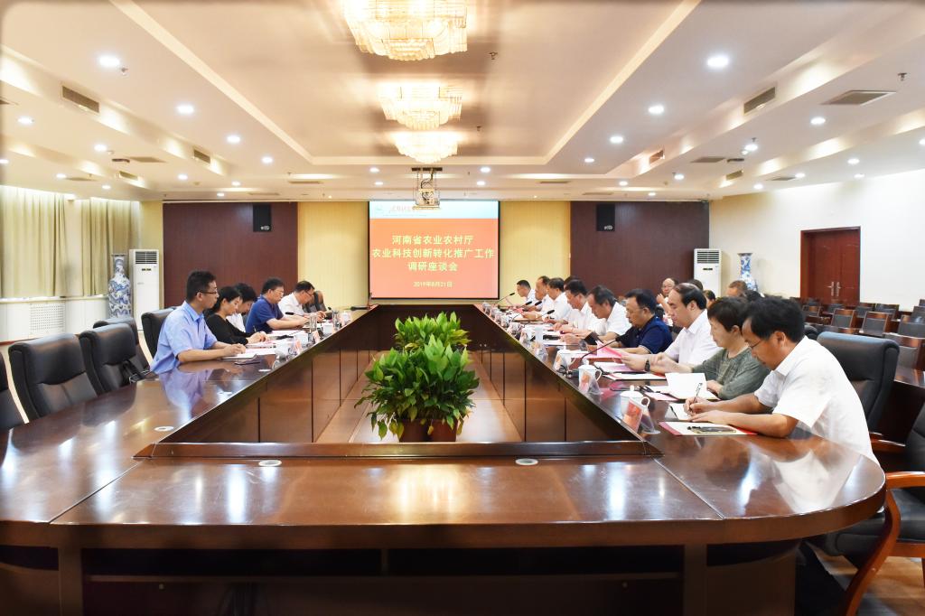 马汉军汇报从河南科技学院的历史传承、科研队伍建设、创新成果转化模式等方面汇报学校在成果转化、社会服务上做法和成效。与会专家代表踊跃发言,纷纷对河南省农业科技创新推广转化工作建言献策,陈金剑边听边记、不时提问,就相关问题进行深入交流,现场气氛热烈活跃。