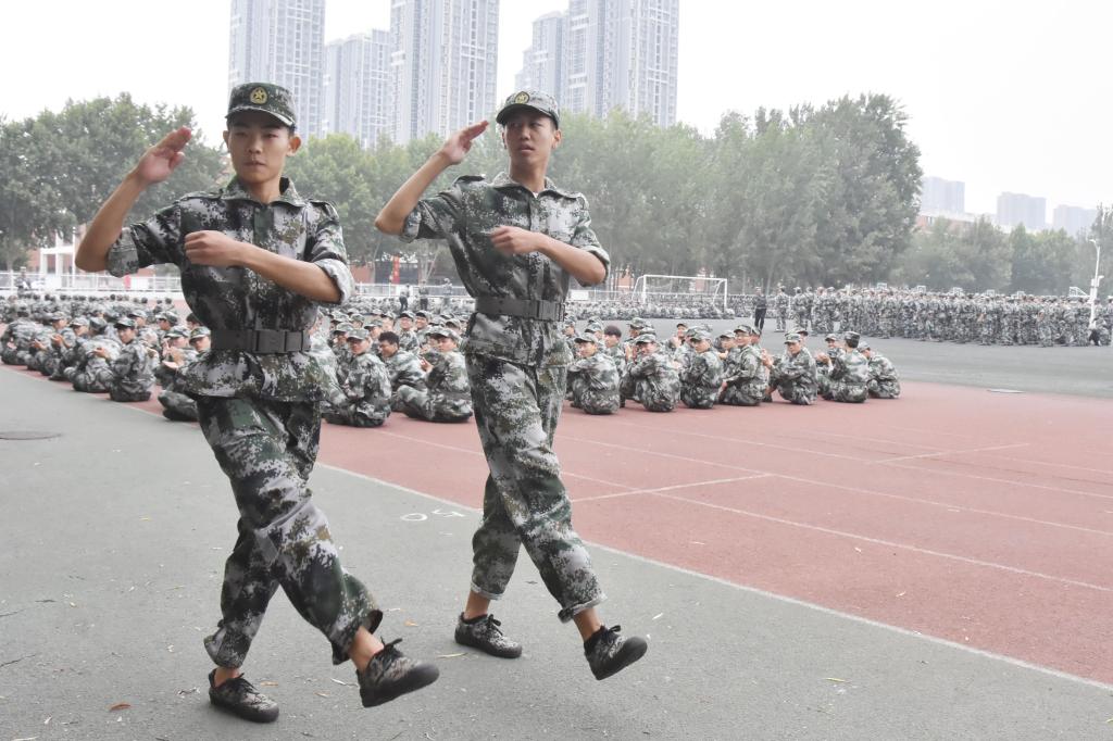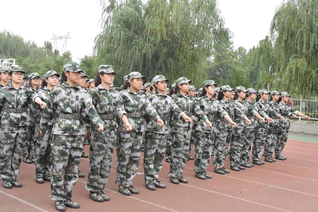 9月17日,细雨蒙蒙,校园内大一新生正在冒雨进行军训,他们不惧风雨、顽强拼搏,尽管天气恶劣,但是他们却精神抖擞,以饱满的热情、一丝不苟的精神参与到了各个项目训练当中。教官们手把手教,学生们认真的学,在短短几天内,齐步走、正步走、敬礼及军拳训练项目已初见成效。整齐的列队,嘹亮的口号,有力的步伐,成了校园内一道亮丽的风景线,处处张扬着青春与活力。
