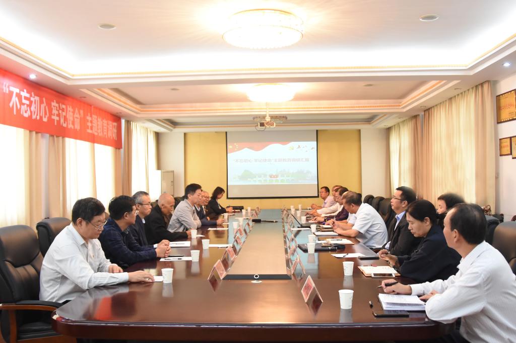 在会议室,党委理论中心组与高职学院党政领导进行了座谈。高职学院负责人从坚守初心、为党育才、为国育人,弘扬科院精神、艰苦奋斗、自力更生,做新时代科院人、忠诚担当、创新发展三个方面汇报了高职学院对百农精神的挖掘、提炼和传承。