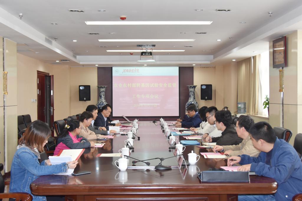 生命科技学院负责人汇报了学校转基因工作开展情况、规章制度建设及执行情况。