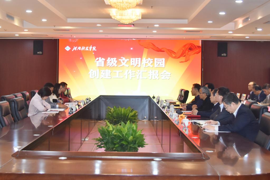 校党委副书记宋亚伟就我校省级文明校园创建工作进行了汇报。近年来,学校认真贯彻习近平新时代中国特色社会主义思想,以立德树人为根本,以全面提高教育质量为重点,不断加强师生员工思想道德建设,深入推进精神文明建设工作开展,为学校事业高质量发展、服务新乡经济社会作出了积极贡献,充分发挥了我校省级文明单位的辐射带动和示范引领作用。学校思想道德建设扎实有力、广泛有效;领导班子建设坚强有力、勤政廉洁;师德师风建设措施有力、效果明显;校园文化建设丰富多彩、健康向上;校园环境建设和谐有序、整洁优美;活动阵地建设导向正确、育人有效。扎实有效的精神文明工作,有力促进了教学、科研、管理等学校各项事业再上新台阶。今后,学校将继续瞄准建设教学研究型大学的奋斗目标,锐意进取、开拓创新,不断推动精神文明建设高质量发展,为新乡市全国文明城市建设做出新的更大贡献。