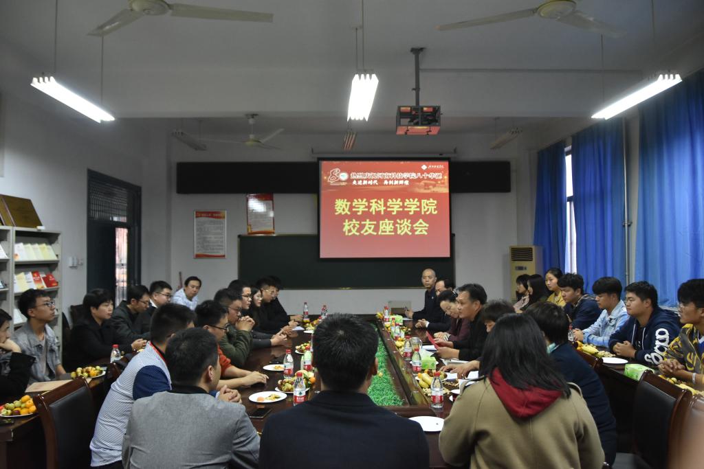 11月2日下午,数学科学学院召开优秀校友座谈会。学院党委书记任建成从师资队伍建设、人才培养、学院建设等方面,向校友们介绍了学院近年来取得的成绩。希望大家继续关注母校的发展,群策群力,共同为母校的发展出谋划策。校友们畅所欲言,对母校的飞速发展和翻天覆地的变化表示赞叹与欣慰,并结合自己的工作和专业方向,为学校的发展提出许多建设性意见。同时也从自身大学学习情况,考研发展,自身创业等方面为在座同学指明了专业发展前景,增强了同学们的学校自信和专业自信。