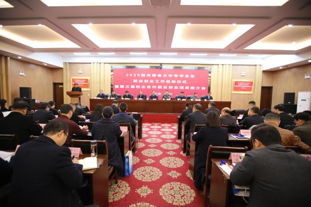 11月28日上午,2020届河南省大中专毕业生就业创业工作启动仪式暨河南省第三届校企合作就业创业项目推介会开幕式在郑州召开。省人民政府副秘书长尹洪斌及省军区国防动员局、省人力资源社会保障厅、省教育厅、省工商业联合会、省工业和信息化厅、省科学技术厅、省科学技术协会等相关部门领导出席会议。全省高校分管毕业生就业创业工作的校领导和部门负责人400余人参加会议。