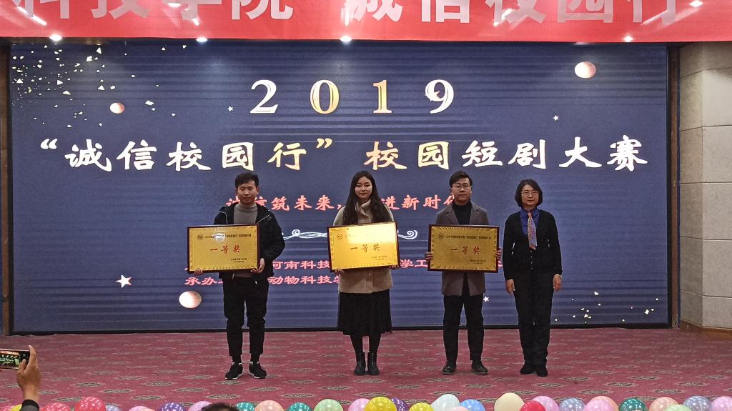 为进一步加强资助政策、金融基础知识、征信知识等普及宣传教育,促进我校学生资助工作健康发展,根据河南省教育厅等四部门《关于举办河南省大学生“诚信校园行”校园短剧大赛的通知》要求,12月5日,由党委学工部、学生处主办,动物科技学院承办的“诚信校园行”短剧大赛决赛在图教201举办。副校长王霞、河南省大学生资助管理中心马武等出席。