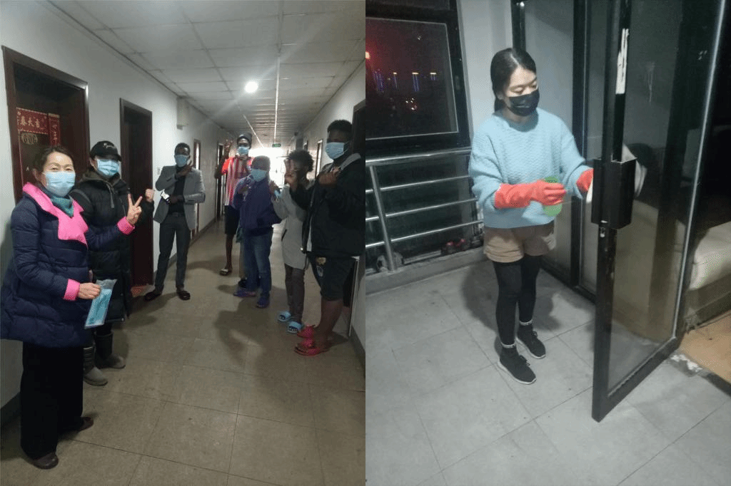 为留学生发放防控物资、进行消杀作业
