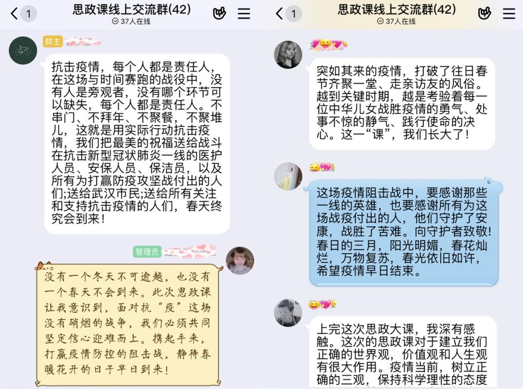 全国大学生同上一节思政课,形式新颖,令人振奋。广大青年学生纷纷表示,通过这节课,更加深刻认识到全体中国人民在习近平同志为核心的党中央坚强领导下打赢这场疫情防控战争的信心和决心,更加深刻体会到中国共产党领导和中国特色社会主义制度的显著优势,更加深刻感受到举国上下万众一心、众志成城做好新冠肺炎疫情防控工作的强大力量。作为青年学生,在这个特殊时刻,必须增强“四个意识”、坚定“四个自信”、做到“两个维护”,守好规则,不出门,不返校,保护好自己和家人;按照学校要求,通过网络平台努力学习,不断提升自我,做到“停课不停学、学习不延期”,在危急之时显示担当忠诚,让青春在与病毒的抗争中绽放,努力在这场疫情防控人民战争、总体战、阻击战贡献青春之力量!