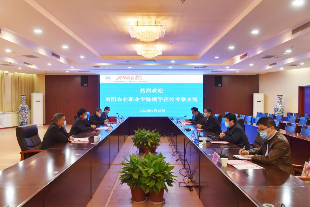 4月25日上午,南阳农业职业学院党委副书记贾国文、纪委书记孙天洲等一行4人来校考察校庆筹备及组织开展工作。我校在行政楼206会议室举行座谈会,副校长贾积身出席,校长办公室有关负责同志参加了会议。
