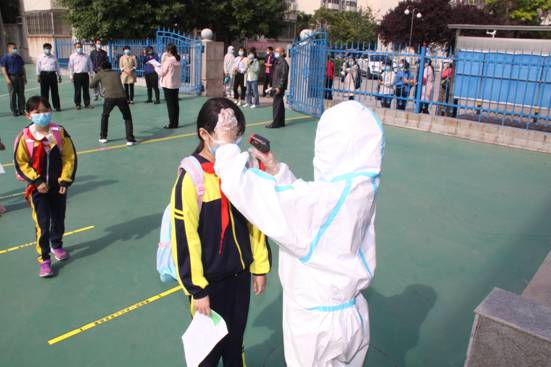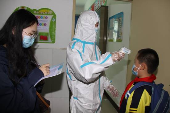 教师为进入校园的学生测温