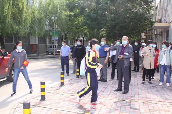 学生按照指定线路进入学校