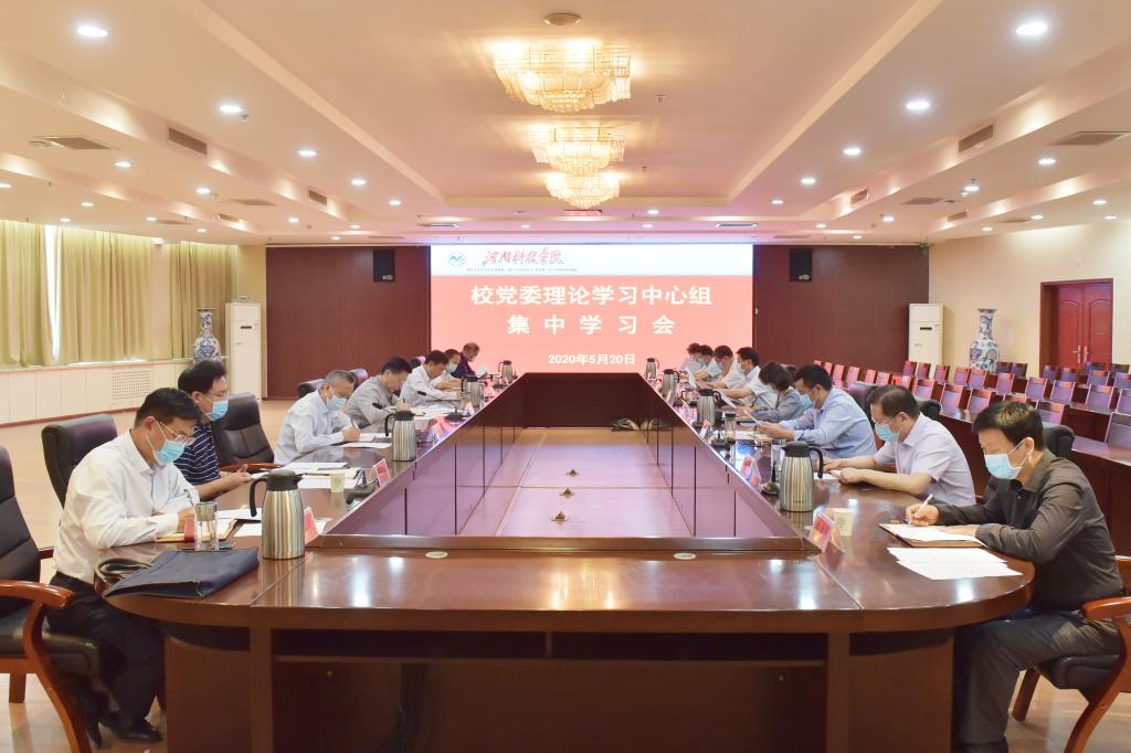 5月20日,校党委理论学习中心组在行政楼206会议室举行集中学习会,对习近平总书记近期重要讲话、指示精神及关于疫情防控工作的重要讲话、指示精神等内容进行学习。校领导周志远、李成伟、宋亚伟、苗双虎、冯启高、曹国杰、贺杰、何松林、王霞、贾积身出席学习会。党委办公室、校长办公室、党委组织部、党委宣传部、党委统战部负责人参加会议。