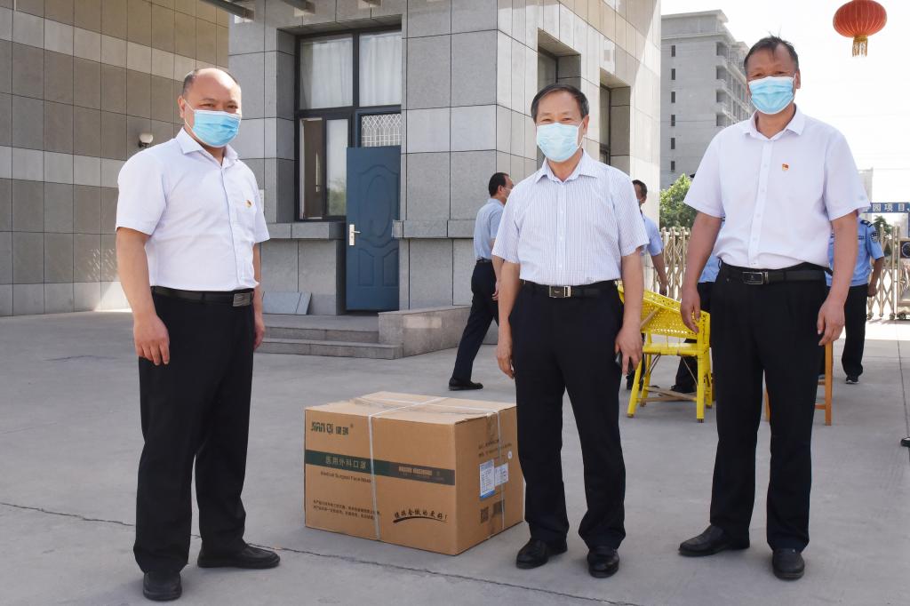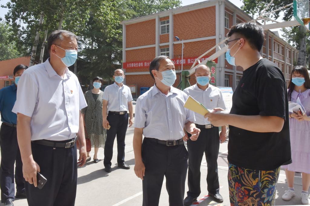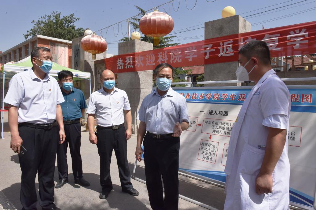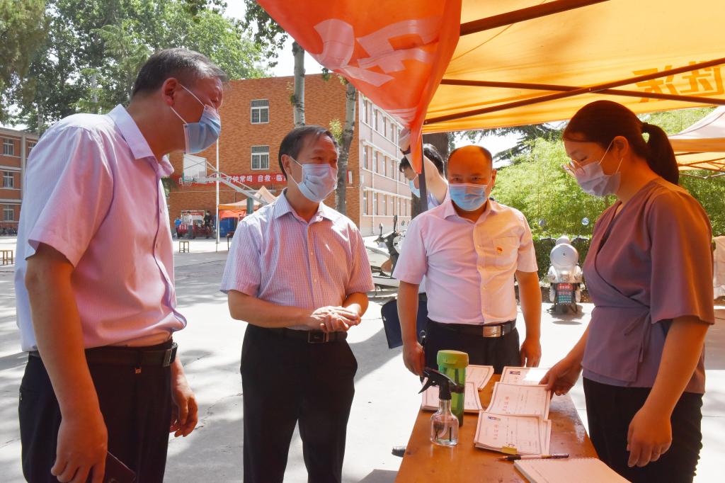 近日,我校2020届毕业生分批次错峰返校。6月3日上午,校党委副书记苗双虎在相关部门负责同志的陪同下,到我校辉县校区实地看望慰问返校学生和一线教职员工,指导开展疫情防控工作。苗双虎一行在辉县校区学校门口、测温点仔细查看了返校查验情况,详细了解工作流程,对学生出入校门的规范流程表示肯定。