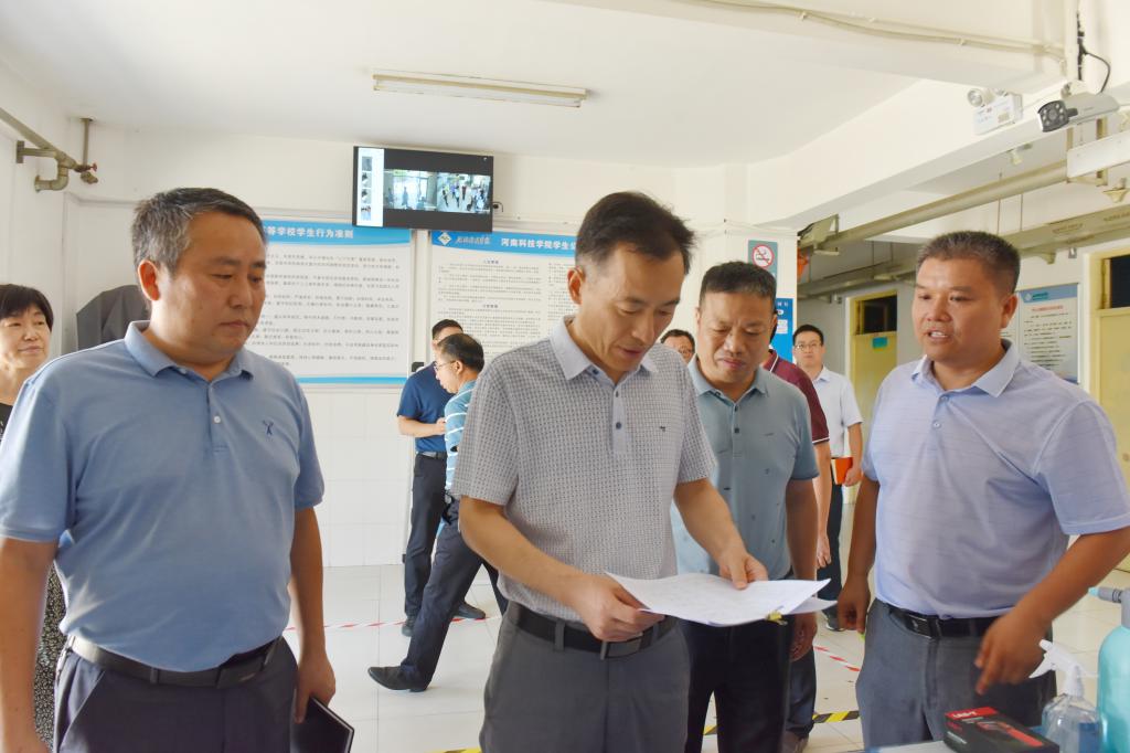 8月26-28日,校领导李成伟、苗双虎、贺杰、何松林、王霞、贾积身、陈合义深入一线检查指导我校新学期疫情防控工作,党委办公室、校长办公室、学生处、后勤服务中心、保卫处、校医院等相关单位负责人陪同检查。