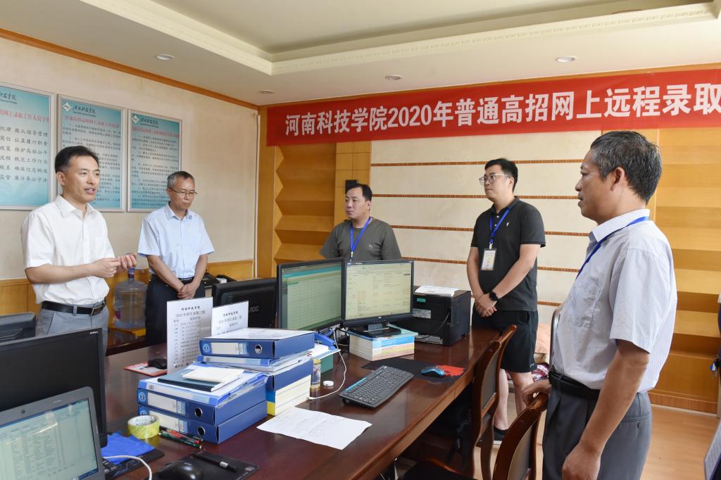8月29日,校长李成伟、党委副书记宋亚伟在校长办公室等相关职能部门负责人的陪同下,到远程招录现场,检查指导到我校2020年招生录取工作。