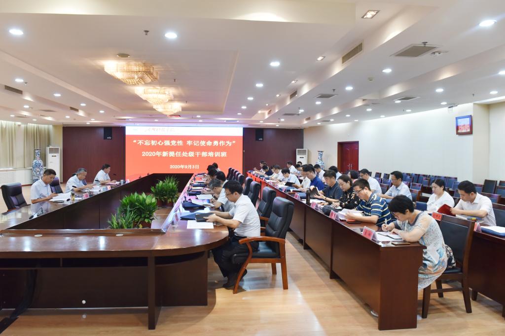 为深入学习习近平新时代中国特色社会主义思想和党的十九届四中全会精神,贯彻落实《干部教育培训工作条例》《2018-2022年全国干部教育培训规划》《2019-2022年全省干部教育培训规划》,9月3日上午,我校“不忘初心强党性牢记使命勇作为”2020年新提任处级干部培训班开班。校党委副书记宋亚伟出席开班仪式,全校新提任处级干部参加培训。党委组织部部长姚刚主持开班仪式。