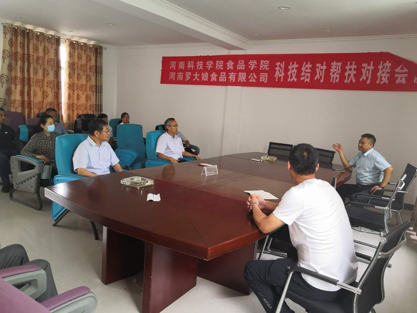 9月17日上午,宋亚伟、贾积身与商水县委常委副县长王勇、副县长张述新一起在商水县委党校会议室举行2020年结对帮扶工作座谈会。会议介绍了商水县脱贫攻坚基本情况和我校与商水县结对帮扶取得的成效,说明了我校结对帮扶的整体情况、目标、任务和实施办法,对智力帮扶、法律咨询服务、高素质农民培育、科技帮扶、小麦玉米示范田建设、科研试验站运行、电子商务指导培训以及粮油、小杂粮、副食品采购等各方面帮扶情况进行了详细说明。