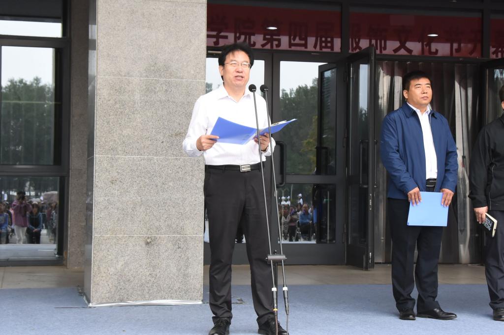 冯启高致开幕词。他指出,河南科技学院始终把人才培养的质量和效果作为检验教学工作的根本标准,不断创新人才培养模式,深化教育教学改革,努力提高大学生的创新精神和实践能力。服饰文化节作为创新人才培养模式的一种探索和实践,对凝练办学特色、提升人才培养质量以及丰富校园文化都发挥了重要的推动作用。他强调,第四届服饰文化节安排内容丰富、活动形式多样、参与同学广泛,在展示服装类专业教学成果的同时,必将对提升师生艺术修养、提高校园文化建设层次产生积极而重要的影响。他要求各主办单位和承办单位要高度重视、精心组织,确保服饰文化节圆满成功,为深化教育教学改革、推动优秀传统文化传承发展做出新的、更大的贡献。