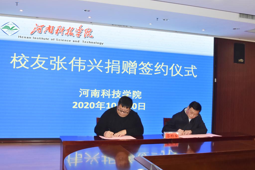 10月20日上午,校友张伟兴捐赠签约暨客座教授聘任仪式在行政楼206会议室举行。副校长何松林、莱恩坪安集团董事长张伟兴校友、九三学社新乡市委专职副主委兼秘书长宋惠清出席仪式,校长办公室、人事处、后勤服务中心、园艺园林学院等单位负责人、捐赠方公司人员以及师生代表100余人参加。仪式由园艺园林学院党委书记郜庆炉主持。