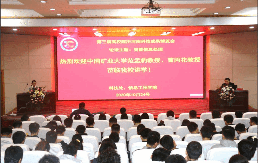 10月24日,第三届高校院所河南科技成果博览会——智能信息处理分论坛在图教201报告厅举行。中国矿业大学范孟豹教授、曹丙花副教授分别作了专题报告。会议由信息工程学院院长李国厚主持。信息工程学院300余名师生聆听了报告。