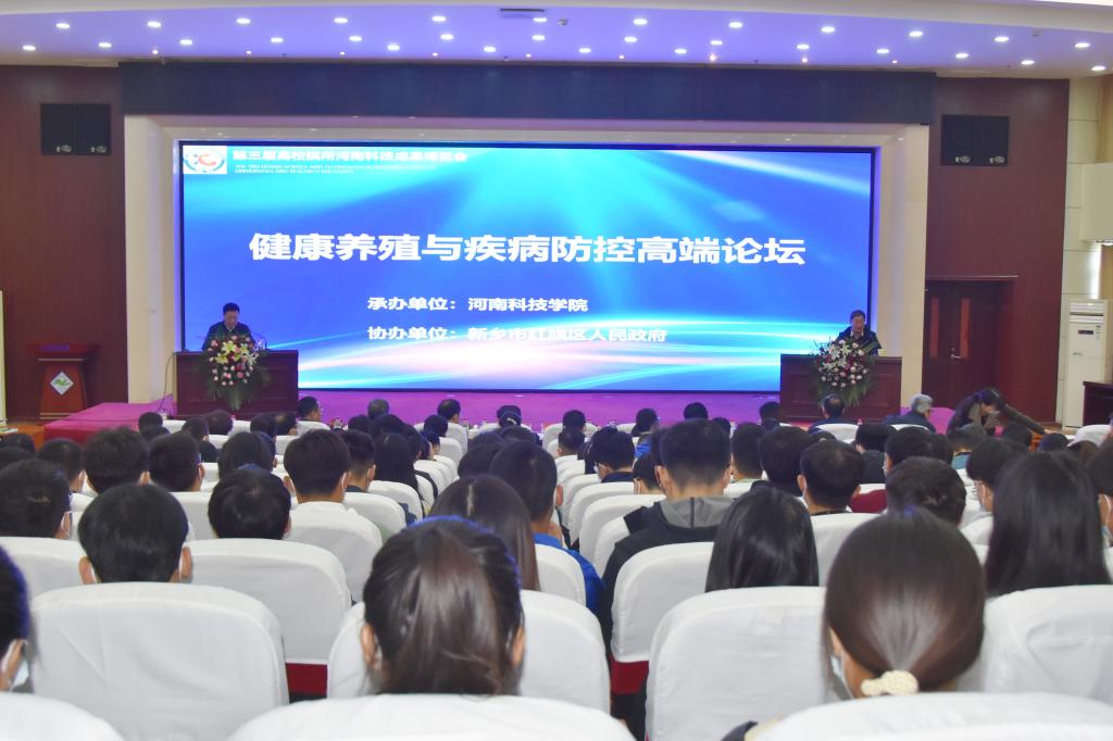 10月24日上午,由我校承办的第三届高校院所河南科技成果博览会分论坛“健康养殖与疾病防控高端论坛”在行政楼三楼多功能报告厅举行。中国工程院院士、华中农业大学教授陈焕春,我校党委书记周志远,副校长贾积身,新乡市红旗区副区长邵自卿等出席论坛。中国农业科学院哈尔滨兽医研究所研究员仇化吉和孙元、山西农业大学姜玉锁教授以及我校动物科技学院师生200人齐聚一堂,讨论健康养殖与疾病防控取得的新进展。