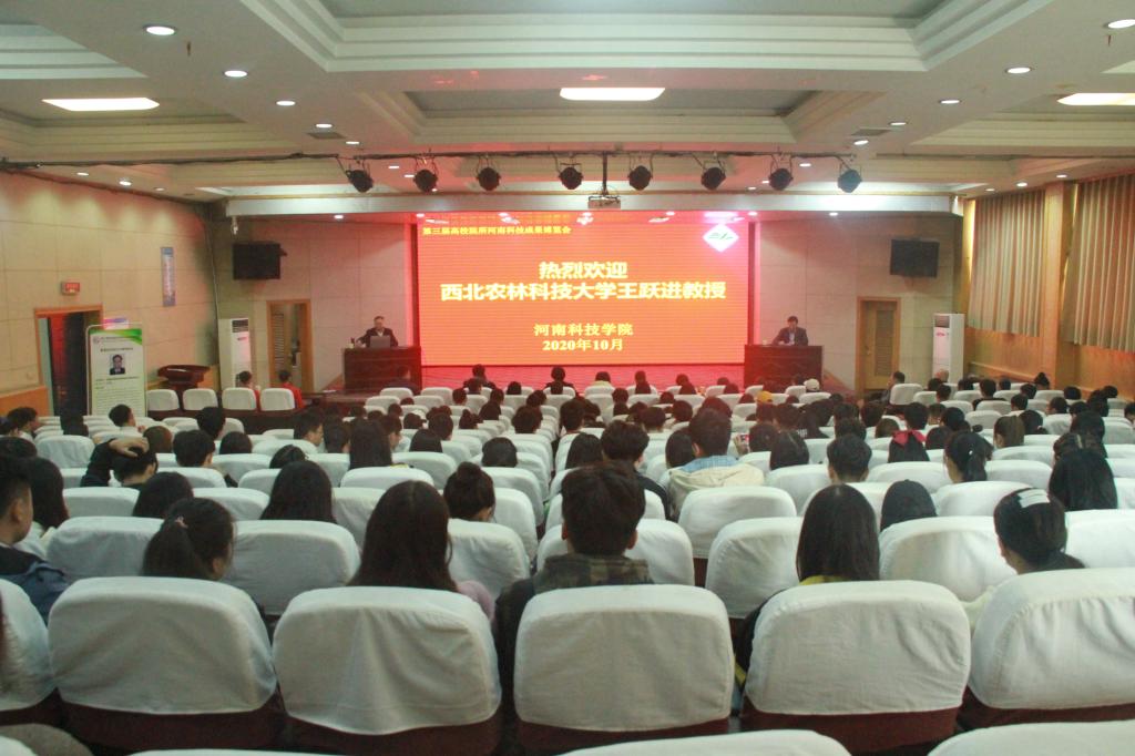 10月25日,由新乡市人民政府主办,河南科技学院承办的第三届高博会“分子育种与病害绿色防控高端论坛”在我校行政楼308会议室举行。中国工程院院士康振生教授,西北农林科技大学王晓杰教授分别做了论坛主题报告。报告会由校长李成伟主持。生命科技学院、资源与环境学院师生代表200余人聆听了报告。