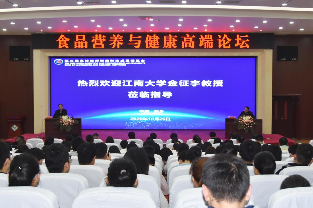 10月26日上午,由我校承办的第三届高校院所河南科技成果博览会分论坛“食品营养与健康高端论坛”在行政楼308会议室如期举行。江南大学金征宇教授受邀作论坛主题报告,报告会由食品学院院长李光磊主持,食品学院师生代表300余人参加了此次论坛。