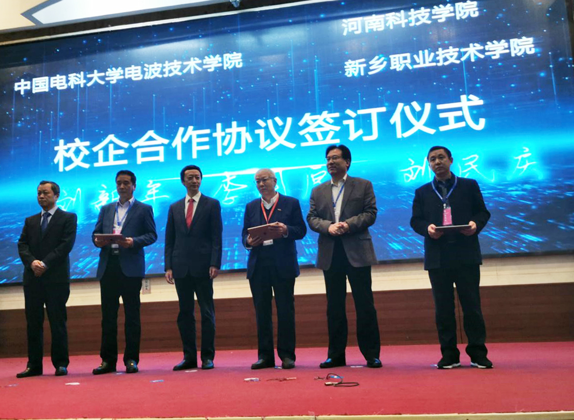 随后举行了中国电科大学电波技术学院与我校及新乡职业技术学院的校企合作签约仪式。冯启高与中国电科大学副校长郝政疆等共同见证了签约仪式。仪式结束后,冯启高与合作企业负责人进行了深入交流,介绍了学校特色优势和办学成果,希望双方在多个方面进一步加强交流与合作,不断提高校企合作的办学成效。