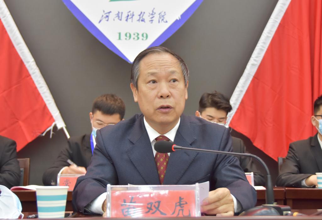 会上,苗双虎发表讲话。他肯定了过去一年学生会组织在校党委的领导和校团委的具体指导下,团结带领全校学生,围绕学校各项事业发展,深刻把握新时代新任务新要求,牢记立德树人根本任务,以保持和增强政治性、先进性、群众性为目标,强化学生会桥梁和纽带作用,更好地团结和凝聚青年学生听党话、跟党走,在思想政治引领、繁荣校园文化、服务和维护学生权益、加强自身改革建设等方面取得的成绩。他强调,学生会是党领导下的主要学生组织,学生会工作是党的群众工作的重要方面。学校党委将进一步加强对学生会的全面领导,为新时代做好学生会工作创造良好条件。校团委、各相关职能部门、全校老师要站在巩固和扩大党执政的青年群众基础,保证党的事业薪火相传、后继有人的战略高度,全力支持学生会的工作,都要做青年学生的知心人、热心人和引路人。他深刻分析了新时代青年学子所肩负的历史使命,向全校广大学生提出了做“信仰坚定的爱国者、堪当大任的奋斗者、德才兼备的追梦者”的殷切期望,为同学们健康成长成才指明了方向。