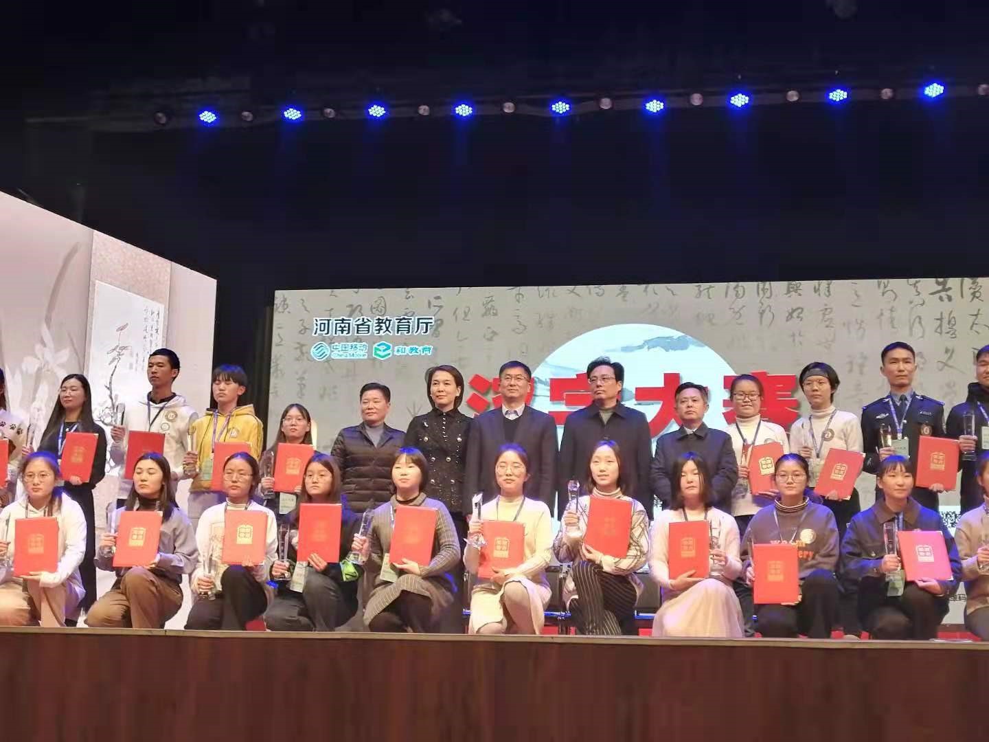 12月18日-20日,由河南省教育厅主办,中国移动通信集团河南有限公司协办的2020年河南省汉字大赛在信阳举行。省内59所高校代表队共212余名选手参加了比赛,我校化学化工学院韩淳波、文法学院王玉洁、教育科学学院翟文惜三名同学参加比赛并荣获高校组一等奖,韩淳波同学荣获2020年河南省汉字大赛高校组冠军。