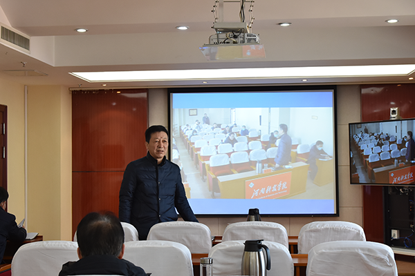 12月21日,省委高校工委、省教育厅党组在郑州通过全省教育视频会议系统召开全省教育系统一体推进不敢腐不能腐不想腐深化以案促改工作会议,我校在行政楼701会议室设置分会场,组织收看了会议视频内容。校领导周志远、李成伟、苗双虎、冯启高、曹国杰、贺杰、何松林、王霞、贾积身、陈合义出席会议,纪委(监察专员办公室)综合室、巡察工作办公室等单位有关负责同志参加了会议。