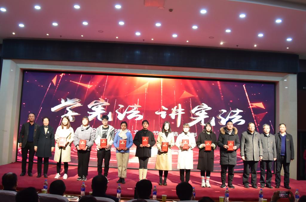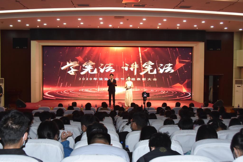 12月23日晚,由校依法治校工作领导小组办公室、校长办公室、党委宣传部、党委学工部(学生处)、校团委主办,文法学院承办的2020年“学宪法 讲宪法”暨法治文化节总结表彰大会在行政楼308会议室举行。校纪委书记(监察专员)贺杰出席总结表彰大会,校依法治校工作领导小组成员单位负责人、各二级学院副书记、团委书记、获奖师生代表参加了此次大会。