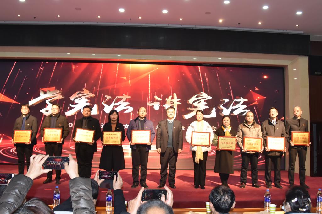 会议宣读了获奖名单。在热烈的掌声中,贺杰和与会的校依法治校工作领导小组成员单位负责人分别为获得“学宪法、讲宪法”知识竞赛、“宪法卫士”行动计划学习活动优秀组织奖的第一党总支、经济与管理学院等10个获奖单位,获得个人一等奖的16名教师及学生代表颁发了奖牌和荣誉证书。颁奖环节结束后,大会将艺术欣赏与法律宣传相结合,为大家呈现了一场寓教于乐、精彩纷呈的节目表演。