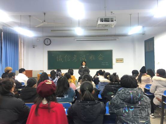 1月4日下午,副校长王霞在3号楼102教室参加联点班级文法学院中文201班的诚信考试主题班会。