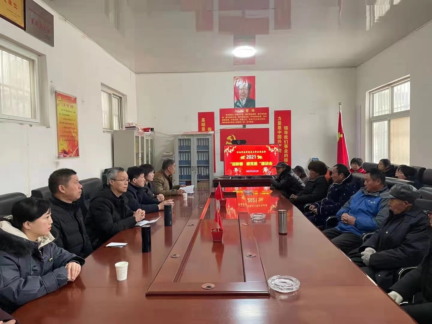 在村委会,举行了“迎新春 感党恩”座谈会,宋亚伟一行、闫庄村“两委”成员、村里享受政策脱贫户和60岁以上党员代表进行了座谈。宋亚伟强调,在以习近平同志为核心的党中央坚强领导下,闫庄村积极克服疫情影响,决战脱贫攻坚取得了阶段性成就,几年来村容村貌变化巨大。同时,学校加大对闫庄村脱贫攻坚工作的支持力度,出资帮助建设肉羊养殖场和进行蔬菜大棚改造,积极购买闫庄村的大蒜、辣椒酱、粉条等特色农产品等。他鼓励脱贫户要在党的好政策下早日实现富裕,老党员要积极发挥示范带动作用,积极配合好村两委和驻村工作队工作;要深化巩固已取得的脱贫成绩,防止返贫,为乡村振兴奠定扎实基础。