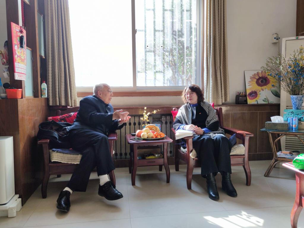 校领导走进老同志家中,仔细询问他们的身体、生活和家庭情况,了解他们的思想动态和诉求,亲切交谈、倾听他们对学校发展建设的意见和建议,并叮嘱有关部门要确保离退休干部待遇落实到位,要用心用情做好服务工作,坚持传统服务方式与智能化服务创新并行,适应统筹推进疫情防控和社会、学校发展工作要求,深入基层一线,满腔热情为广大老同志解决实际困难。交谈中,校领导向老同志们简要介绍了学校一年来的发展情况,感谢老同志长期以来对学校的关心和支持,希望老同志们发挥积极作用,为学校发展建言献策,并通过他们向全校离退休教职工表示亲切的慰问,祝愿大家新春愉快、健康幸福!