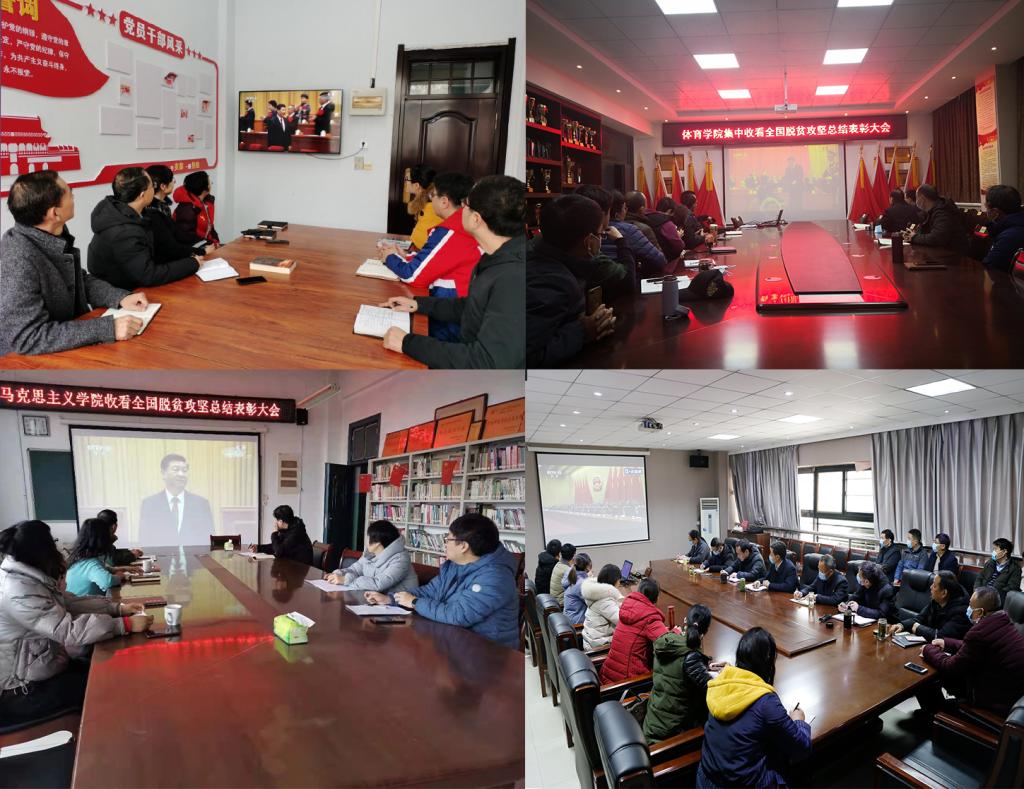 广大师生员工纷纷表示要认真学习领会、抓好贯彻落实,要紧密团结在以习近平同志为核心的党中央周围,以先进集体、先进个人为榜样,要大力学习弘扬上下同心、尽锐出战、精准务实、开拓创新、攻坚克难的脱贫攻坚精神,砥砺前行、勇于担当,立足本职岗位,以永不懈怠的精神状态、一往无前的奋斗姿态,真抓实干、埋头苦干,向着实现第二个百年奋斗目标奋勇前进!
