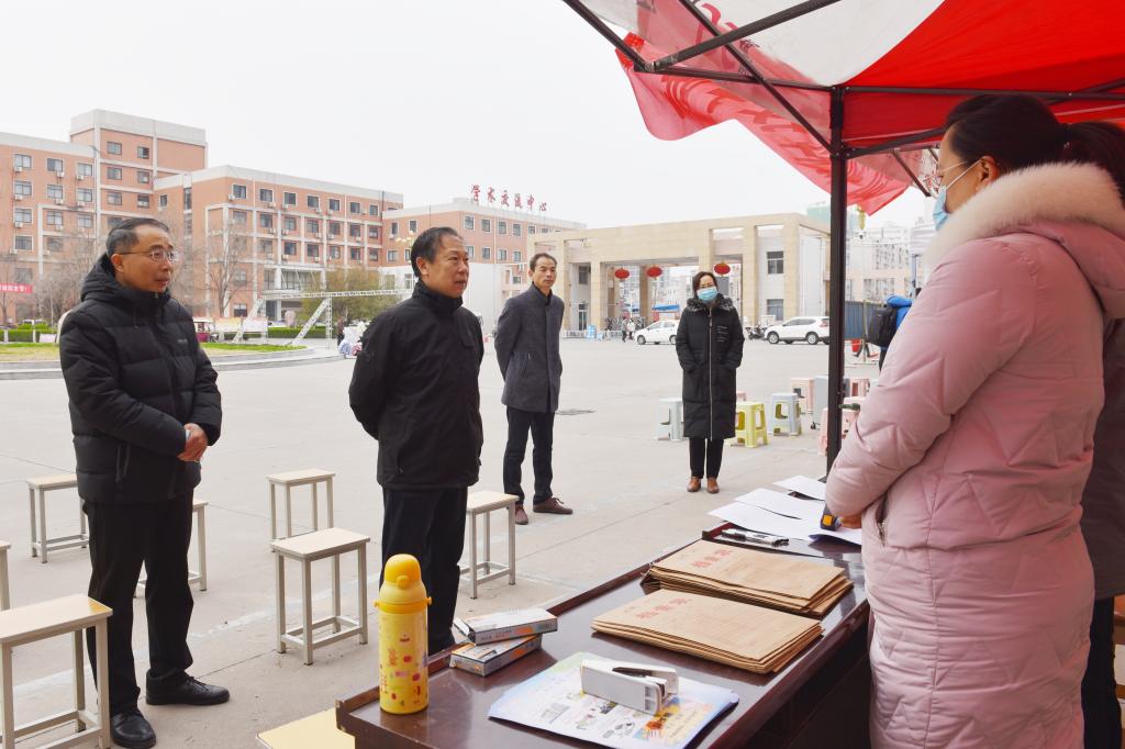 3月6日上午,我校春季学期开学第一批学生返校报到,校党委副书记苗双虎在党委学工部、学生处、校团委、保卫处等相关负责人的陪同下,对全校20个学院报到接待点逐一走访,认真了解学生返校报到流程、学生报到实时情况,看望返校学子,慰问一线工作人员,指导春季开学学生返校工作。