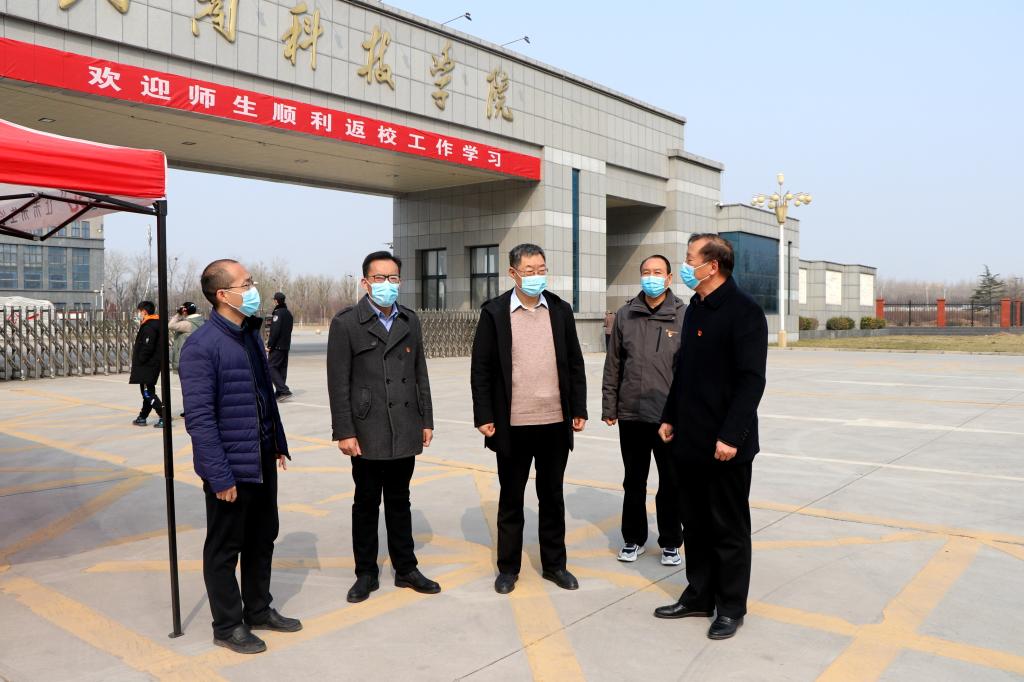 贾积身重点查看了校门口、各系接待处、教学楼、留观室等场所的疫情防控布置,详细了解了入校流程、高职学院师生健康检测情况以及防控物资的储备情况。同时,贾积身在院领导的陪同下,实地考察了学院的南院墙、温室大棚、园艺园林实训基地等地,对高职学院的进一步建设发展给出了合理化建议。