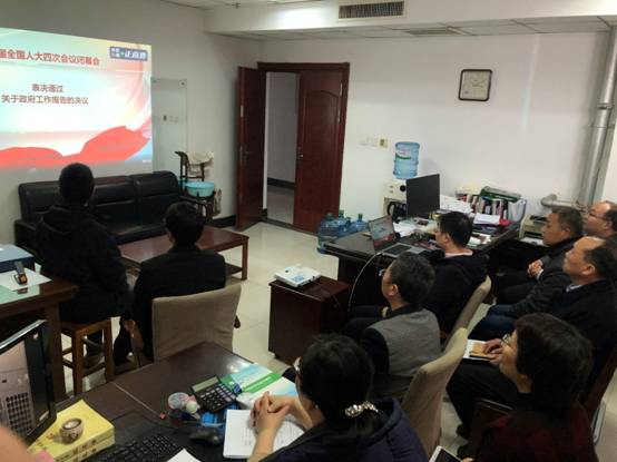 3月11日下午,科技处党支部在行政楼607办公室集中收看了十三届全国人大四次会议闭幕会直播,并就会议内容进行了热烈学习讨论。