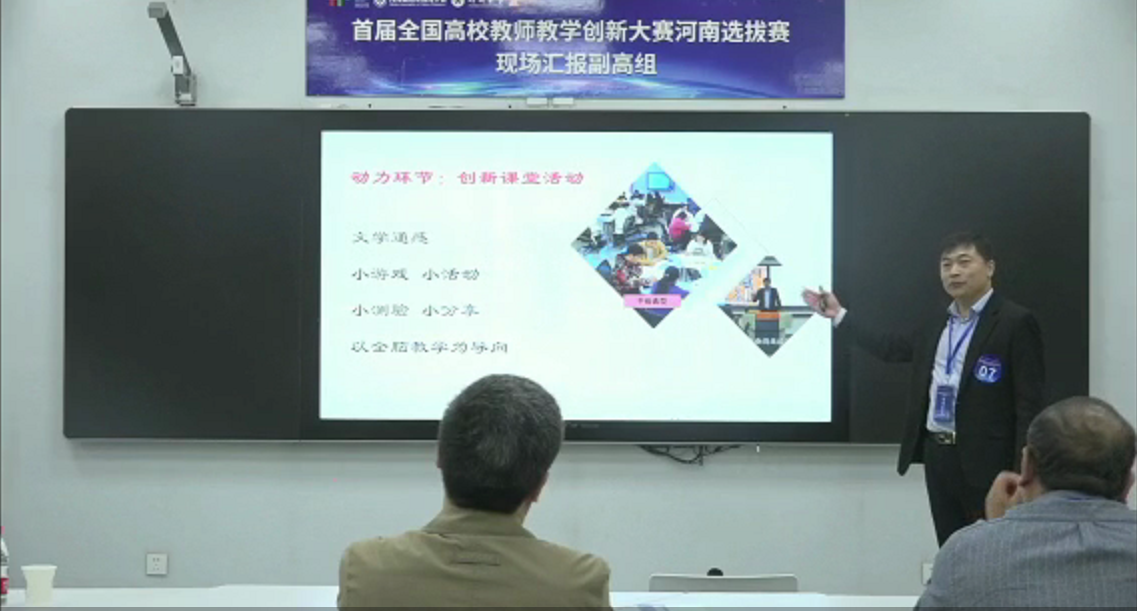 4月10日,由河南省高等教育学会、郑州大学主办的首届全国高校教学创新大赛河南选拔赛落下帷幕,我校教师苏喜庆荣获优秀选手奖。首届全国高校教学创新大赛(河南赛区)选拔赛于2021年1月启动,苏喜庆老师作为“2019年河南省本科高校青年课堂教学创新大赛”特等奖获得者,主讲《文学概论》课程参加比赛。