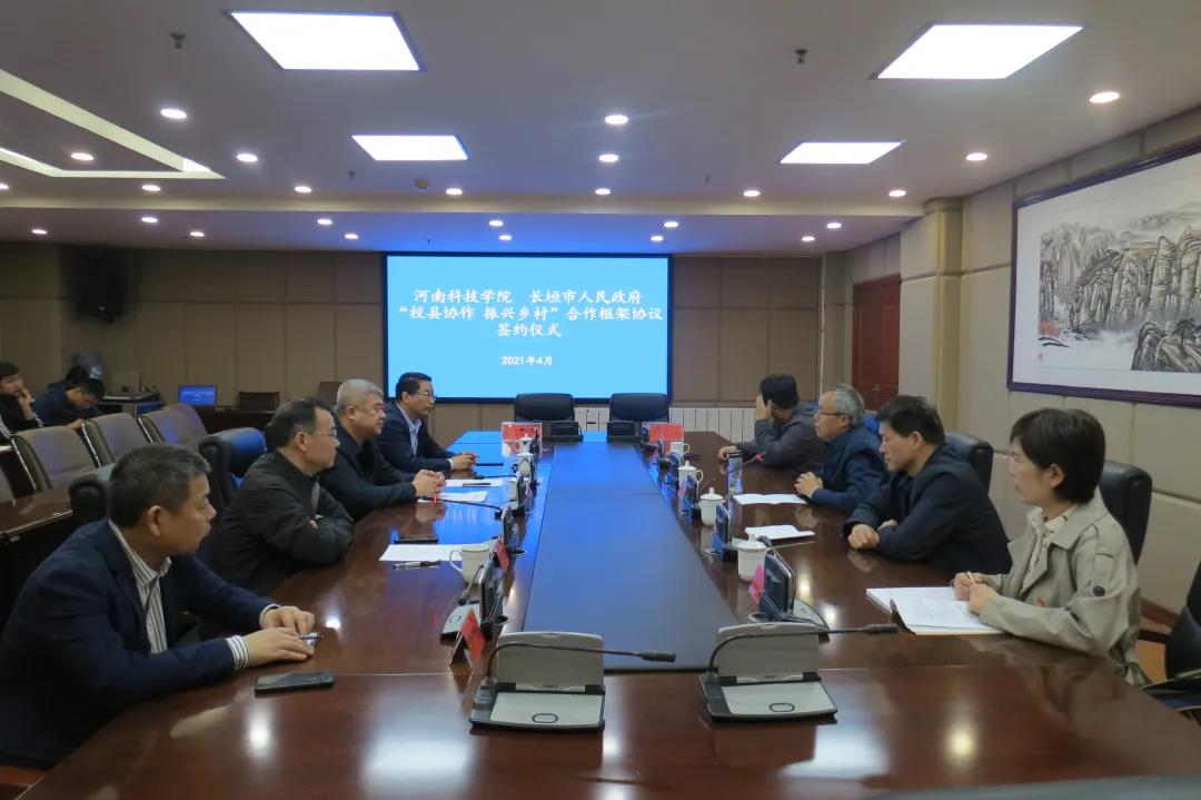 张彤对我校一行的到来表示热烈欢迎。他说,河南科技学院和长垣市人民政府举行“校县协作 振兴乡村”合作框架协议签约仪式,是河南科技学院和长垣市人民政府深入推进校县协作的重要标志,是全面推进长垣市乡村振兴战略的务实之举。长垣市十分珍惜与河南科技学院的合作机会,希望河南科技学院进一步加大支持力度,为长垣市的乡村振兴和现代农业持续培育和输送各类人才,共同搭建产业发展、科技创新和技术推广的交流平台,为长垣市农业农村高质量发展提供支撑。同时希望可以以此为基础,继续在多方面、多层次、多领域进行深度合作,促进乡村全面振兴。