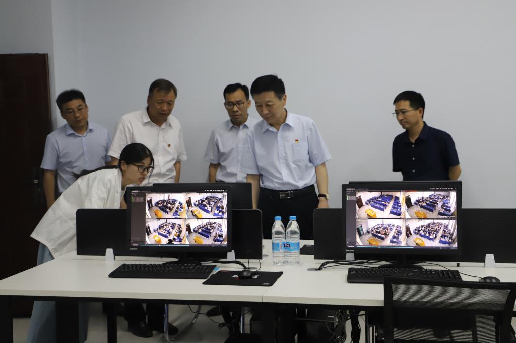 随后,周志远实地查看了考务办公室、保密室、视频监考室、标准化考场等场所。