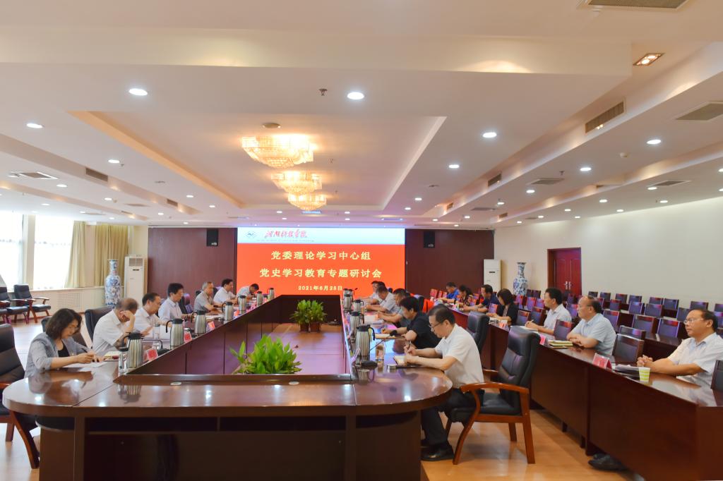 6月25日下午,校党委理论学习中心组在行政楼206会议室召开党史学习教育专题学习研讨会。校党委理论学习中心组成员参加研讨,七名基层党组织书记列席会议。
