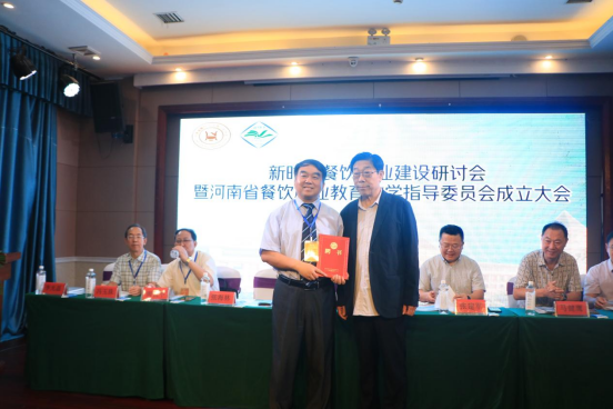 在河南省餐饮职业教育教学指导委员会成立大会上,河南省餐饮与住宿行业协会会长张海林向委员会主任委员、食品学院院长李光磊,副主任委员、郑州旅游职业学院副校长张建军等颁发了聘书。