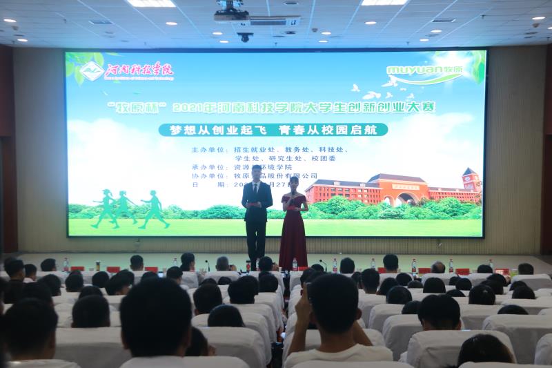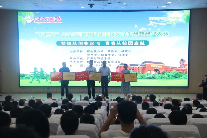 6月27日下午,“牧原杯”2021年河南科技学院大学生创新创业大赛决赛在新图书馆一楼报告厅举行。大赛由招生就业处、教务处、科技处、学生处、校团委、研究生处主办,资源与环境学院承办,牧原食品股份有限公司协办。河南省大众创业导师王立奎等5人,校团委、研究生处、招生就业处、资源与环境学院等单位负责人,牧原集团豫东区域相关部门负责人,各学院党委副书记、副院长和各创业项目指导教师、各参赛团队成员300余人参加活动。